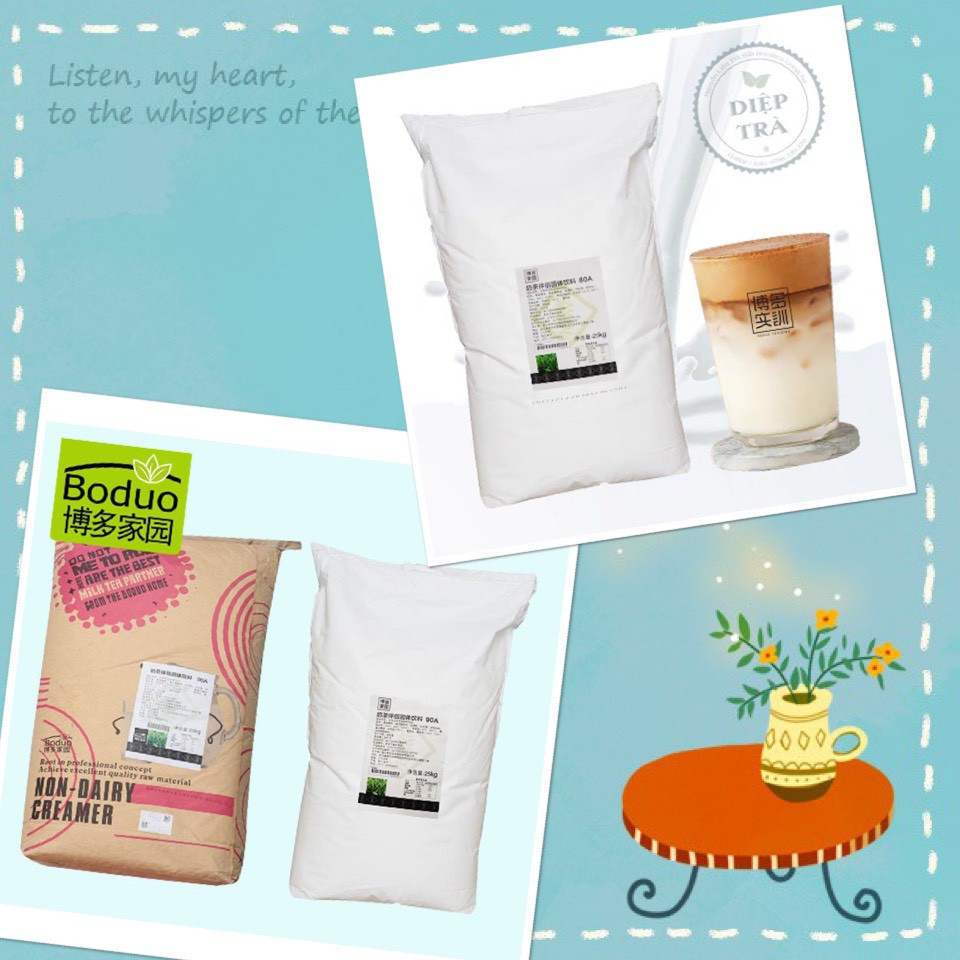 Bột sữa Boduo 90A 25kg là dạng bột mịn có màu trắng, được chiết cuất từ cây dầu cọ với hương vị đậm đà thơm ngon, được ứng dụng trong pha chế trà sữa, tạo độ béo cho các loại thức uống.
