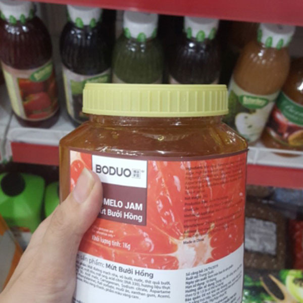 Mứt Boduo bưởi hồng – vị bưởi hồng tự nhiên rất thơm và đặc biệt, rất ngon để làm trà sữa hoặc mix với sữa tươi, làm sinh tố hoặc smoothies,…