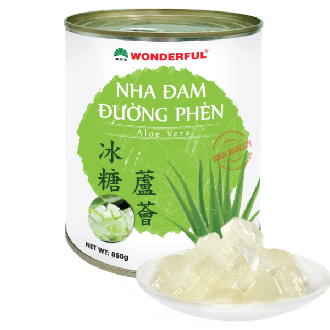 Nguyên liệu làm lên Nha Đam Đường Phèn Wonderful được tinh chọn bởi những lẹ lá nha đam to, căng mọng. Nha Đam Đường Phèn Wonderful có hương vị thơm ngon và độ giòn tự nhiên của nha đam, màu sắc thanh khiết, không chất bảo quản và phụ gia. Nha đam đường phèn Wonderful là loại nguyên liệu tuyệt vời không thể thiếu trong những ngày hè ở các tiệm đồ uống.